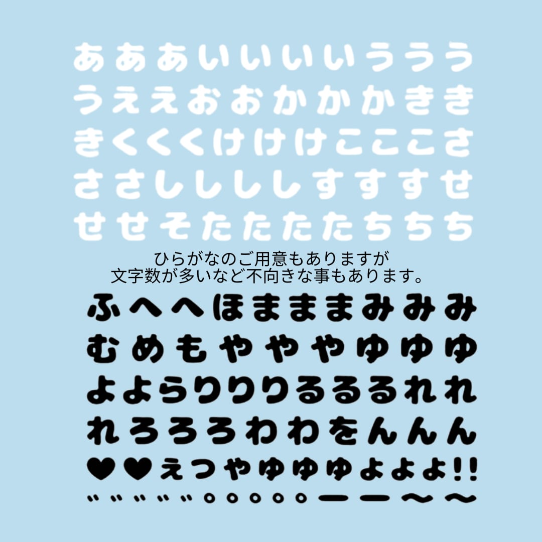 又、ひらがな については小文字の”ぁぃぅぇぉ”は対応不可です。予めご了承下さい。